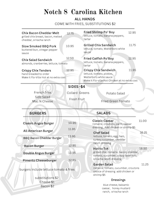 Notch 8 Carolina Kitchen Menu